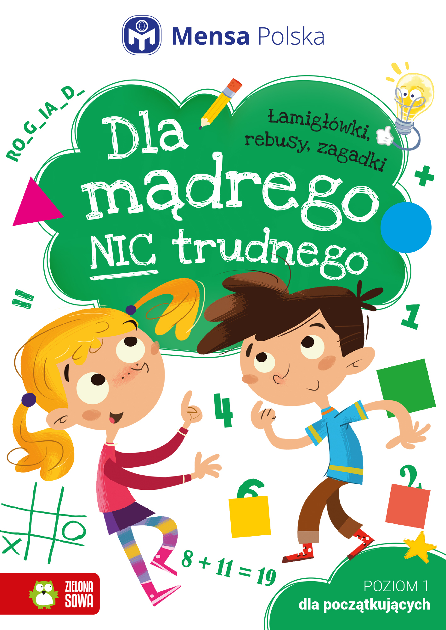 Seria Dla mądrego nic trudnego wydana pod patronatem MENSA* POLSKA, to propozycja dla wszystkich, którzy chcą pogimnastykować umysł. W trzech częściach serii znajdują się zadania, rebusy i łamigłówki o różnym stopniu trudności - dla początkujących (część pierwsza), dla wtajemniczonych (część druga) i dla prawdziwych mądrali (część trzecia). Każda książka zawiera aż 50 różnorodnych zadań, dzięki którym dziecko nauczy się logicznego myślenia.