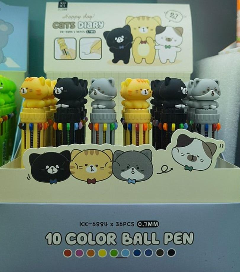 Długopis 10-kolorowy koty (36szt).