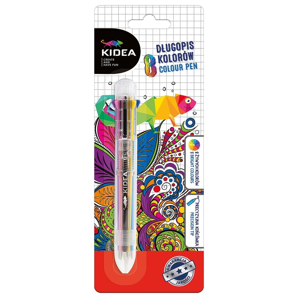 Długopis z wkładami w ośmiu intensywnych kolorach: czarnym, niebieskim, zielonym, brązowy, czerwonym, fioletowym, różowy i żółtym. Jego precyzyjna końcówka ułatwia pisanie, kolorowanie kolorowanek kreatywnych oraz wyróżnienie odpowiednich fragmentów tekstu podczas sporządzania notatek.