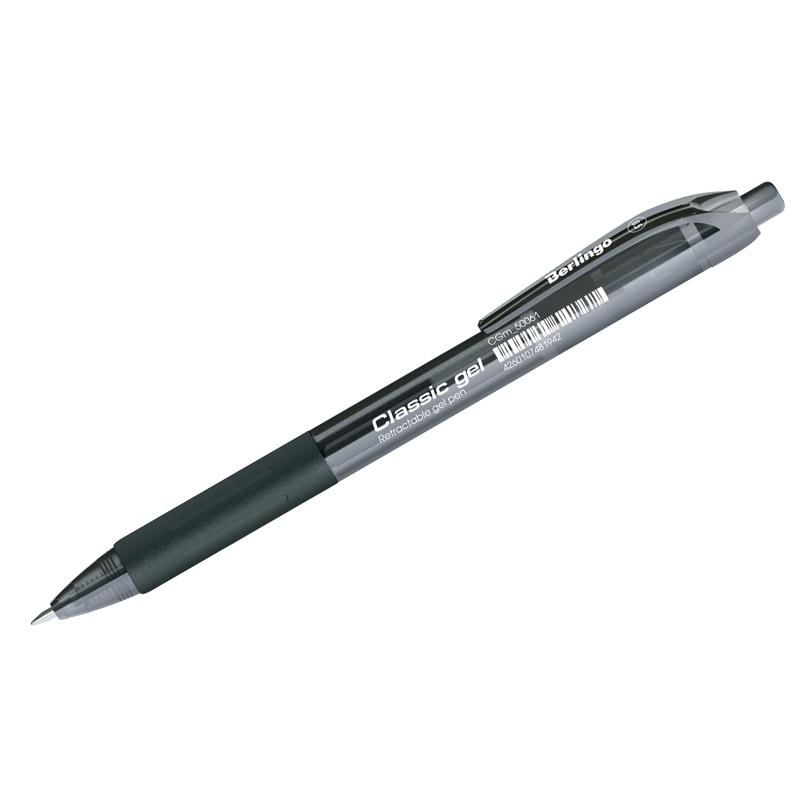 Żelowy długopis Berlingo Classic Gel z klipsem, w przyciemnianej czarnej obudowie. Kolor atramentu jest czarny. Średnica kulki wynosi 0,5 mm, co daje cienką, smukłą linię. Miękki gumowy uchwyt zapobiega ślizganiu się palców podczas pisania i zwiększa komfort pisania. Żel pigmentowy nie blaknie przez długi czas. Szerokość linii pisania: 0,4 mm. Długość pisania 500 m. Ilość sztuk w opakowaniu: 12. Rodzaj opakowania: pudełko kartonowe.
