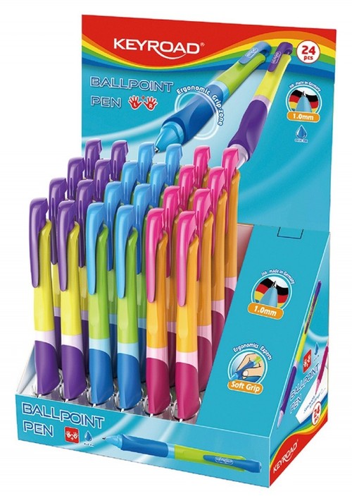 Długopis automatyczny KEYROAD Easy Writer 1,0mm display 24 sztuki mix