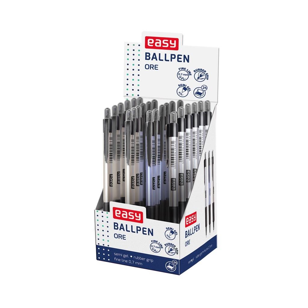 Marka Easy proponuje bardzo szeroką gamę produktów piśmienniczych, wśród których dostępne są m.in. długopisy o różnej grubości linii, korektory, ołówki klasyczne i automatyczne, zestawy geometryczne i ich elementy. Wszystkie produkty wykonywane są z najwyższą dbałością o jakość i w ciekawym wzornictwie.