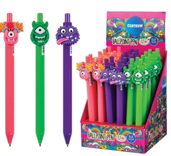 Długopis automatyczny potworki niebieski 0.7mm 89832 centrum (36szt)