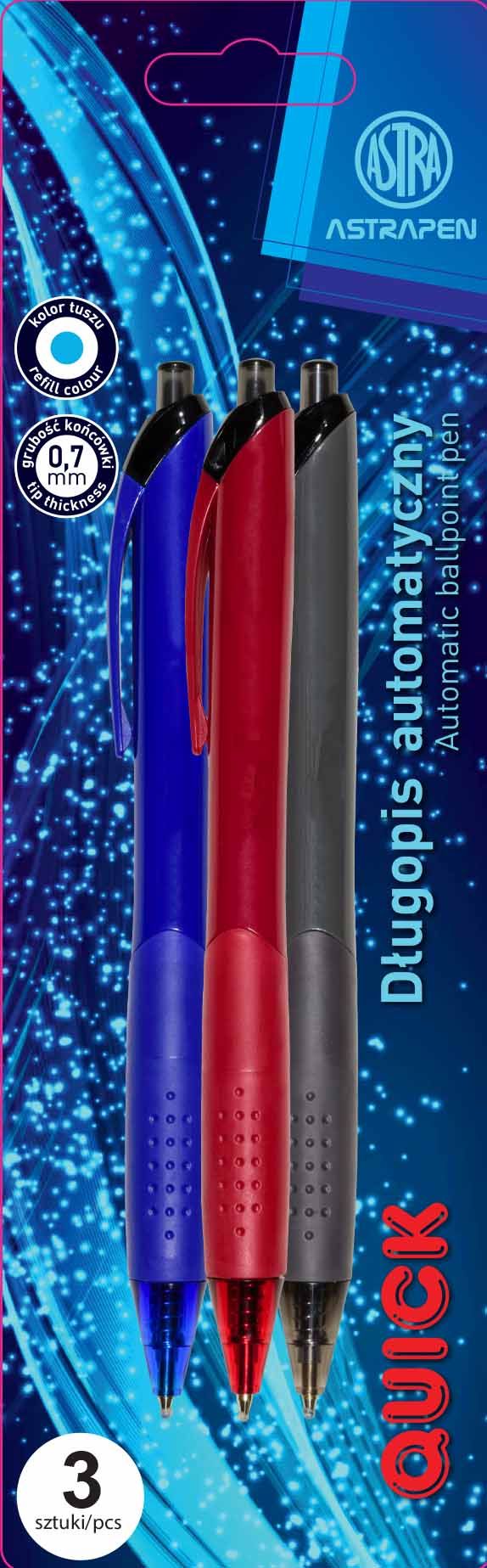 Opakowanie Długopis automatyczny Quick Pen Astra  0.7 mm blister 3 sztuki
