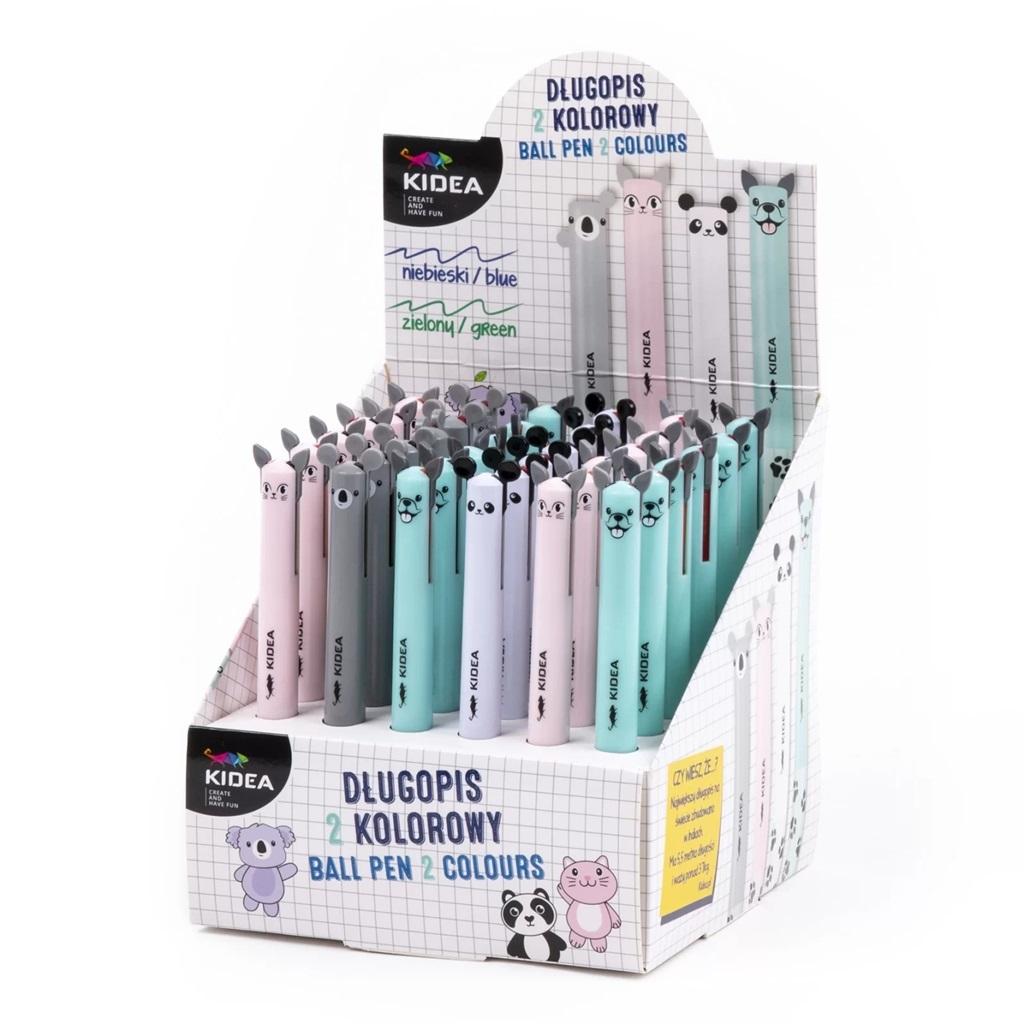 Uroczy automatyczny długopis z 2 różnokolorowymi wkładami. Do wybory aż 4 różne wzory z uroczymi uszami - panda, koala, kot i buldog. Idealny dla wszystkich miłośników zwierząt. Jeden długopis i aż 2 kolory - niebieski i zielony. Precyzyjna końcówka sprawia, że pisanie nim to przyjemność. Doskonale sprawdzą się w wyróżnianiu odpowiednich fragmentów tekstu oraz podczas sporządzania notatek. Funkcja 2 w 1 sprawia, że jest on niezbędny w piórniku każdego dziecka, a dodatkowo zajmuje niewiele miejsca.
