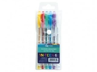 Zestaw długopisów brokatowych. Wkład żelowy brokatowy. Komplet 6 kolorów.