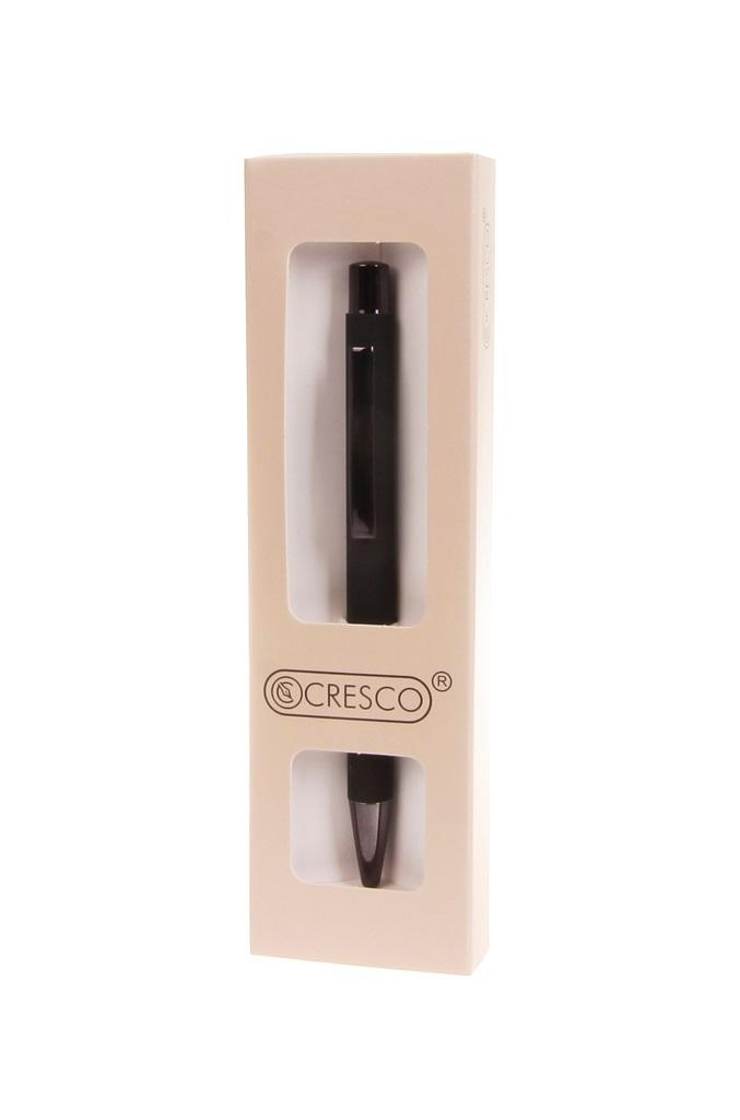 Długopis automatyczny CITY o wyjątkowym softowym korpusie w matowym czarnym kolorze z błyszczącymi wykończeniami. Długopis wyposażony został w wymienny wielkopojemnościowy wkład typu zenith o grubości 1mm linii pisania. Zapakowany w upominkowe etui GB.