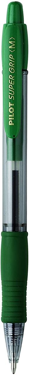 Pilot długopis Super Grip M, kolor kreski: zielony, gumowane uchwyty, grubość kreski: M, strefa chwytu i klips zielony, kolor obudowy: przezroczysty, (160936 / BPGP-10R-M-G / 203004)