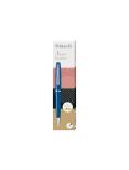 Połyskująca obudowa doskonale współgra z końcówką, pierścieniem i klipsem wykończonymi w tym samym odcieniu. Typowy dla Pelikana klips jest sprężynowy, dzięki czemu jest szczególnie wytrzymały. Przekręcany długopis jest wyposażony we wkład o dużej pojemności w kolorze niebieskim.