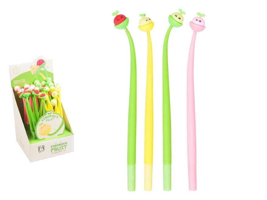 Długopis z kolorową wyginaną końcówką, powłoka antypoślizgowa, niebieski wkład, mix wzorów. Wymiar: 20mm x 205mm x 20mm (szer. x wys. x gł.)