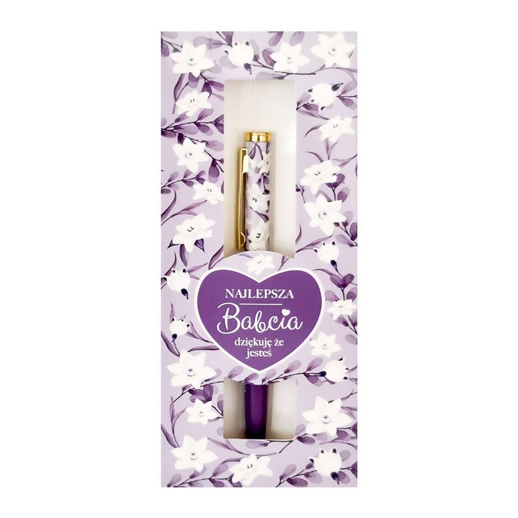 Długopis fioletowy. Materiał: metal. Kolor wkładu: niebieski.