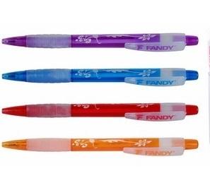 Plastikowy długopis, automatyczny, ergonomiczna obudowa z uchwytem antypoślizgowym, wymienny wkład F-411 needle, igłowa końcówka do bardzo cienkiego pisania, niebieski kolor tuszu, grubość linii 0,5 mm, miks kolorów