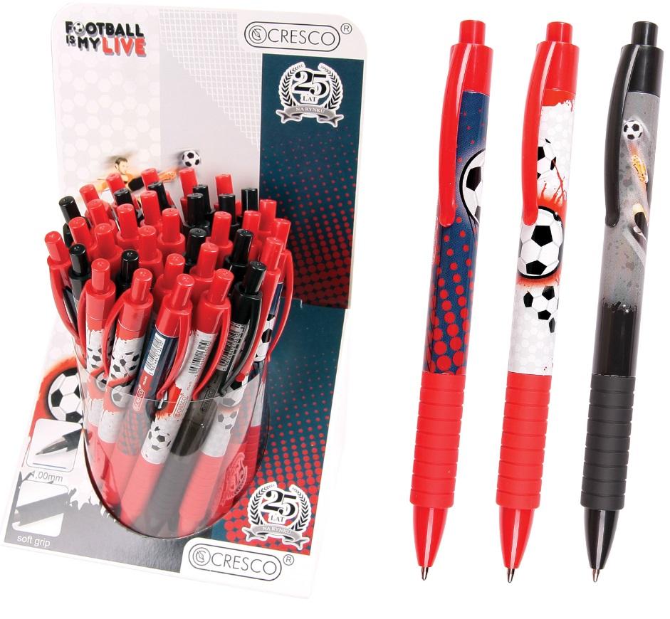 Grubość lini pisania 1,00 mm, gumowy uchwyt, atrament w kolorze niebieskim.