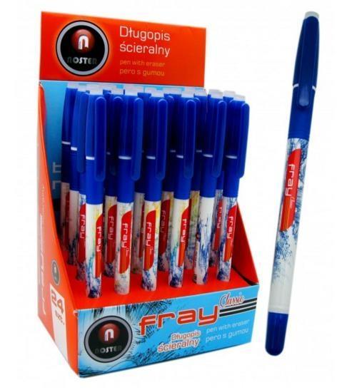 Długopis wymazywalny Fray Classic, możliwość poprawienia błędu, wytarcia zapisanego tekstu. Grubość lini 0,5 mm. Wkład wymienny. 24 sztuki w opakowaniu zbiorczym.