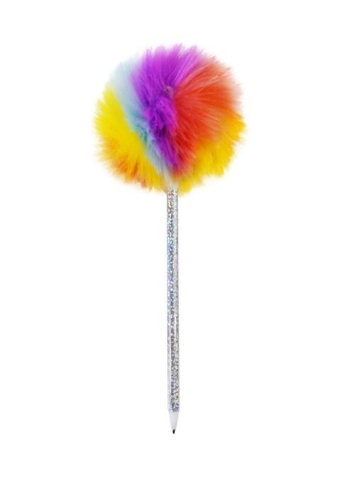 Długopis holograficzny z tęczowym pomponem.