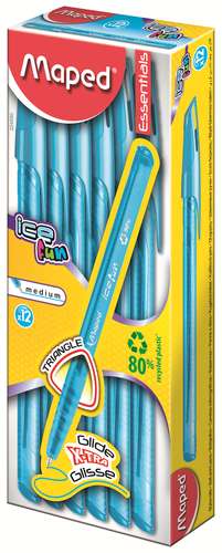 Długopis Ice Fun- ekologiczny i ekonomiczny. Ergonomiczny, trójkątny uchwyt. Korpus i skuwka w kolorze tuszu z matowymi i błyszczącymi wzorami. Wentylowana skuwka. Tusz o niskiej lepkości gwarantujący płynne pisanie. Długość pisania 1500 m.