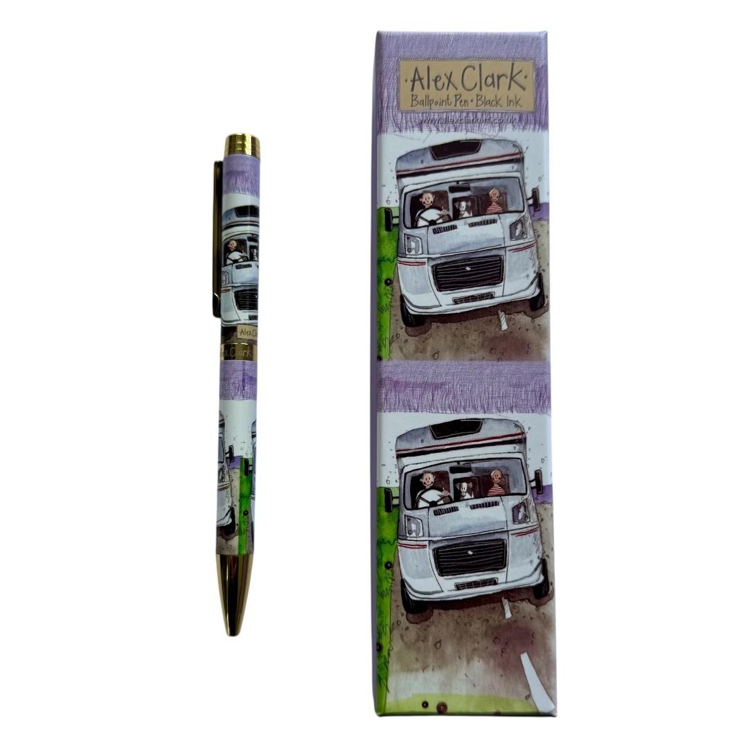Przepiękny długopis z kolorowym wzorem Alex Clark. Łatwo obracana stalówka pozwala na płynne rozpoczęcie pisania. Posiada wkład z czarnym atramentem. Długopis wykończony jest złotem oraz zapakowany jest w ilustrowane, pasujące wzorem pudełko. Rozmiar długopisu: 140 mm x 10 mm.