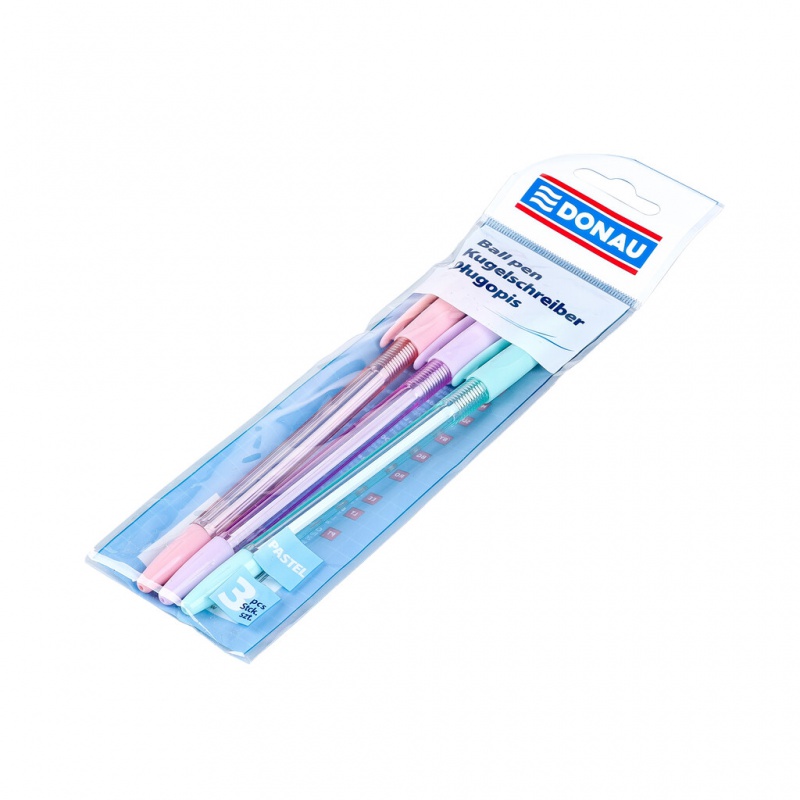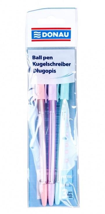 Opakowanie Długopis klasyczny DONAU, pastelowa obudowa, niebieski wkład, 3 sztuki
