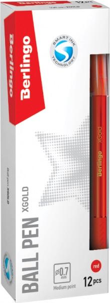 Długopis Berlingo xGold to flagowy model w gamie Berlingo. Obudowa w kolorze czerwonym. Kolor tuszu: czerwony. Średnica kulki 0,7 mm. Szerokość linii pisania: 0,5 mm, długość linii pisania: 850 metrów. Skuwka posiada w wentylowaną nasadkę, która jest bezpieczna dla dzieci. Wygodny klips umożliwia przyczepienie długopisu do pamiętnika lub notesu. Miękki gumowy uchwyt zapobiega ślizganiu się palców podczas pisania. Unikalna, opatentowana technologia Smart Ink zapewnia supermiękkie pisanie.