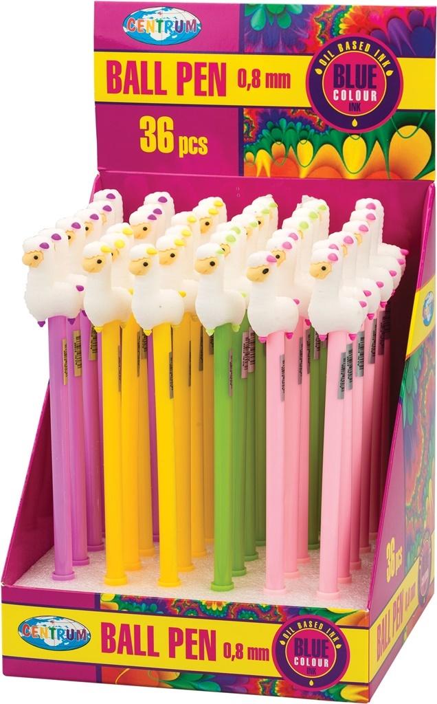 Kolor wkładu: niebieski. Długopis z gumową nakładką w kształcie lamy.