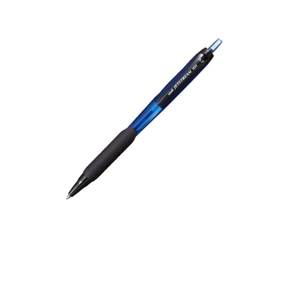 Długopis kulkowy UNI SXN-101 Jetstream. Wypróbuj japońską jakość i lekkość pisania! Idealne dla osób leworęcznych i szybko piszących! Tusz pigmentowy zasycha w ciągu 1 sekundy, nie rozmazuje się, nie robi kleksów, nie blaknie, nie przesiąka przez papier. Można pisać nieprzerwanie po śliskim papierze, np. faktury, papier kredowy. Wygodny gumowy uchwyt, który pozwala pisać przez dłuższy czas bez wysiłku. Automatycznie chowany wkład. Kulka z węglika wolframu. Średnica kulki piszącej 0,7 mm. Grubość linii pisania ok. 0,35 mm. Wymienne wkłady: SXR-71