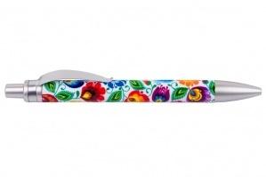 Długopis z wzorem kwiatów folk- motyw ludowy. Niebieski wkład.