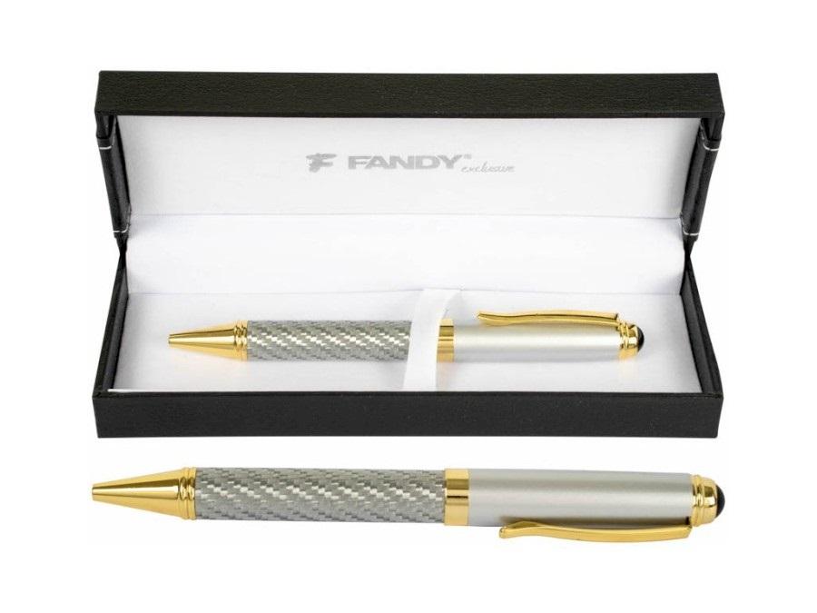 Metalowy długopis s karbonowym wykończeniem, mechanizm obrotowy, wymienny wkład F-Parker, grubość linii 0,7 mm, niebieski kolor tuszu, luksusowe pudełko upominkowe