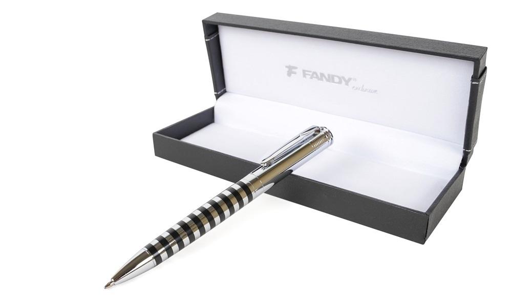 metalowy długopis, mechanizm obrotowy, wkład wymienny F-Parker, grubość linii 0,7 mm, niebieski kolor tuszu, luksusowe pudełko