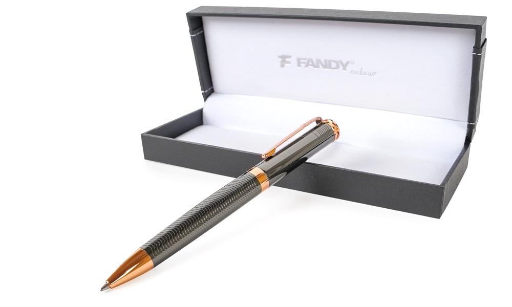 metalowy długopis, mechanizm obrotowy, wkład wymienny F-Parker, grubość linii 0,7 mm, niebieski kolor tuszu, luksusowe pudełko