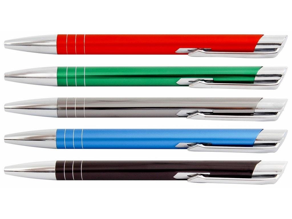 Metalowy długopis, automatyczny, srebrne dodatki, wymienny wkład F-Parker plast, niebieski kolor tuszu, grubość linii 0,7 mm, miks 5 kolorów