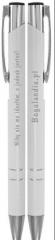 Długopis metalowy, biały z wygrawerowanym tekstem:
