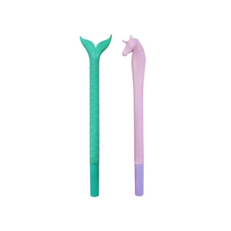 Zielony długopis ogon syreny i różowy jednorożec. 24 sztuki w opakowaniu, mix wzorów.
