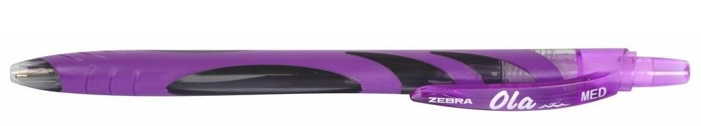 Plastikowy długopis, automatyczny, wymienny wkład F-411, fioletowy kolor tuszu, grubość linii 1 mm.