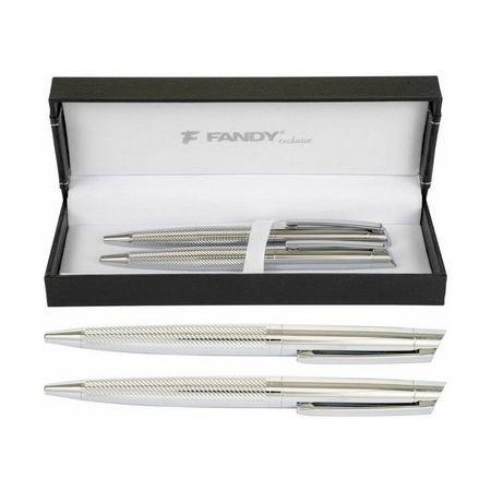 Zestaw metalowego długopisu i ołówka automatycznego, mechanizm obrotowy, wymienny wkład F-Parker, niebieski kolor tuszu, grubość linii 0,7 mm (długopis), grafit 0,5 mm (ołówek automatyczny), luksusowe pudełko upominkowe