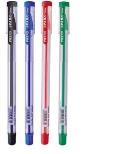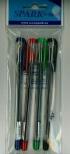 Długopis z niklowo-srebrną końcówką 0,7mm zakończoną kulką wolframową, tusz niebieski o niskiej zawartości wiskozy czyni pisanie wyjątkowo lekkim. 4 kolory w woreczku pcv.
