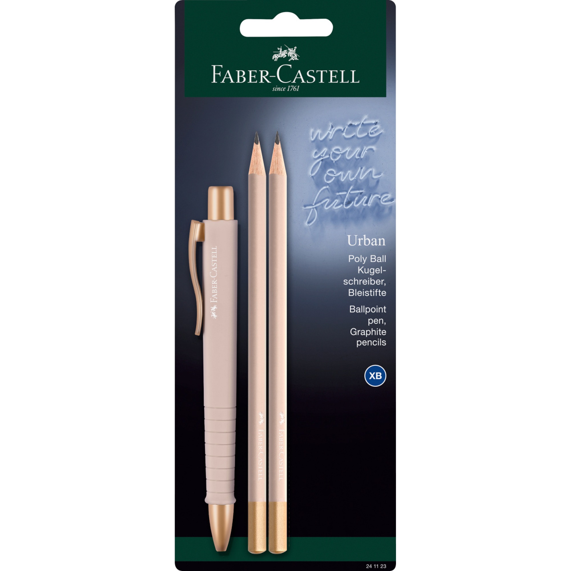 Zestaw długopis plus dwa ołówki z serii Poly Ball Urban GP od Faber-Castell w kolorze bladego różu. Długopis kulowy posiada nieślizgającą się powierzchnię o przyjemnym, miękkim dotyku, co sprawia, że pisanie staje się przyjemnością. Dodatkowo, gwarantuje on niezwykle płynne pisanie, które nie męczy dłoni, a duża pojemność wkładu XB zapewnia długotrwałe użytkowanie. Ołówki grafitowe oferują najwyższą jakość, zapewniając doskonałe rezultaty zarówno podczas pisania, jak i rysowania oraz szkicowania. Posiadają one specjalnie zaprojektowaną, antypoślizgową powierzchnię, która ułatwia trzymanie ołówka, oraz ergonomiczny trójkątny kształt dla maksymalnej wygody podczas długotrwałego użytkowania. Co więcej, ołówki są odporne na złamanie dzięki procesowi wiązania secural (SV), a ich twardość wynosi B. Zestaw w opakowaniu blistrowym.