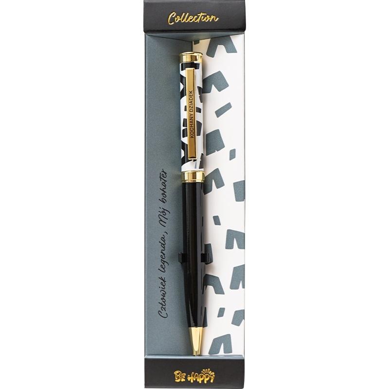 Długopis dla Dziadka z napisem Kochany Dziadek - idealny upominek dla Dziadka Odkryj wyjątkowy sposób, aby wyrazić swoje uczucia - z naszym personalizowanym długopisem "Kochany Dziadek". Idealny dla każdego wyjątkowego Dziadka, bez względu na okazję. Wygląd długopisu Ten elegancki długopis urzeka swoją stylową kolorystyką i modnym designem. Czarny odcień, wzbogacony złotym akcentem i czarnym napisem, nadaje mu wyrafinowany charakter. Unikalny napis "Kochany Dziadek" wygrawerowany na długopisie, dodaje osobistego akcentu. Specyfikacja: Materiał: Plastik, metal Wymiary: 138 x 17 cm Złote dodatki Kolor: czarny Wymienny wkład Kolor wkładu: niebieski Opakowanie: Eleganckie kartonowe pudełko Długopis "Kochany Dziadek" jest doskonałym wyborem na prezent z okazji Dnia Dziadka, prezentu dla Dziadka, Świąt, urodzin, imienin, czy jako miły gest wobec Dziadka. Sprawdzi się jako praktyczny i stylowy element codziennego użytku. Wyróżniający się eleganckim designem i personalizacją, nasz długopis "Kochany Dziadek" to idealny upominek, który z pewnością zostanie doceniony. Dostępny również z innymi imionami, daje możliwość wyboru idealnie dopasowanego prezentu dla każdej osoby.