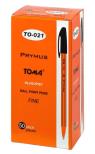 Długopis jednorazowy w pomarańczowej heksagonalnej obudowie, wentylowana nasadka w kolorze tuszu, trwała kulka z węglików spiekanych 0,7mm. Pudełko 50 sztuk