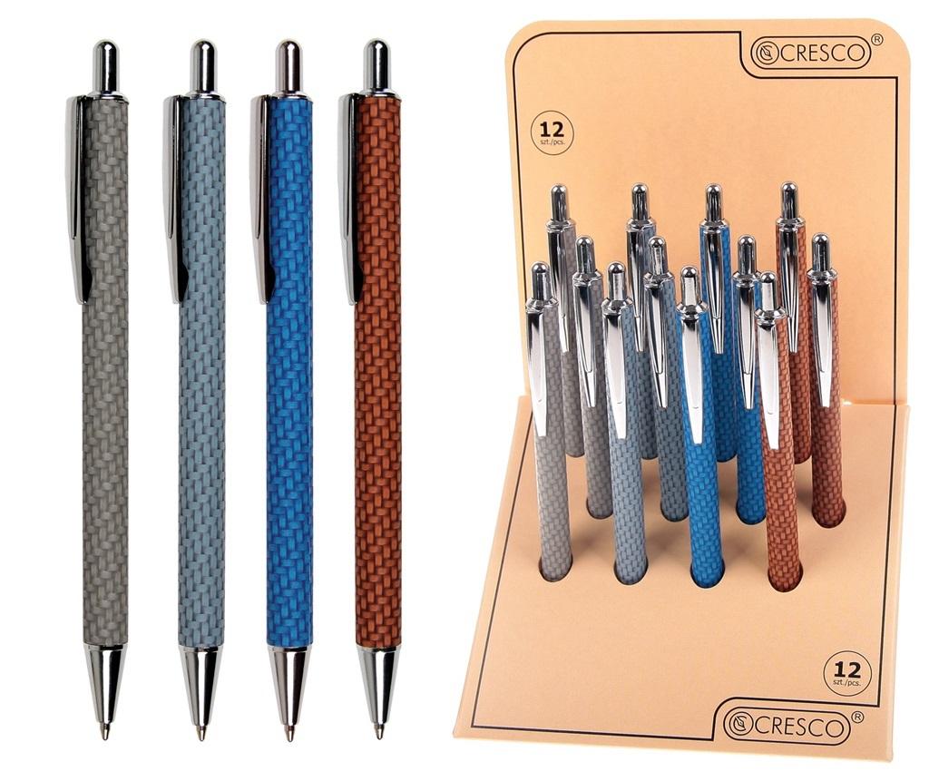 Długopis automatyczny RATTAN o korpusie z wyczuwalną strukturą ratanu. Wyposażony został w wymienny, wielkopojemnościowy wkład typu zenith o grubości 1 mm linii pisania. Wykończenia srebrne.