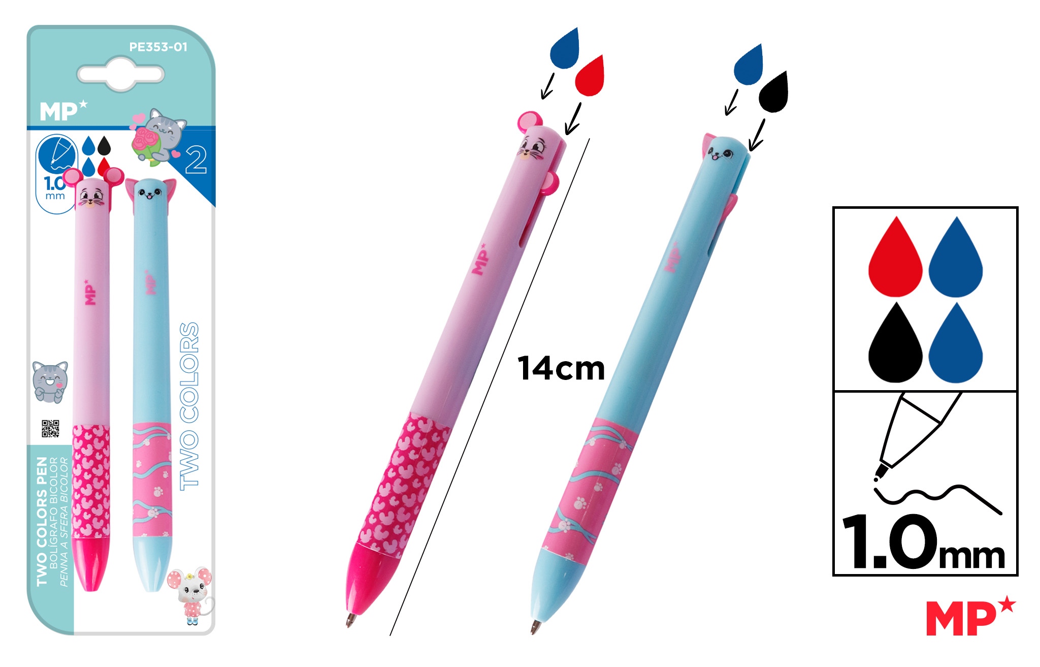 Opakowanie Długopis ścieralny dwukolorowy kotek i myszka 2szt