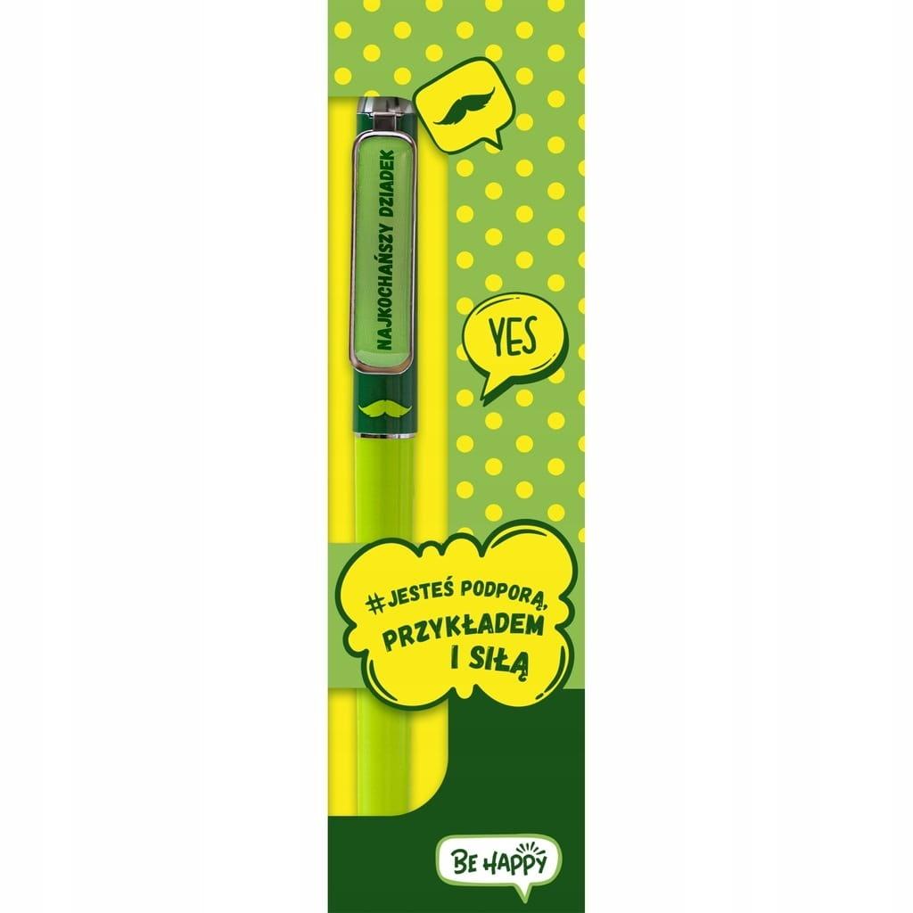 Długopis na prezent, długopis z napisem: "NAJKOCHAŃSZY DZIADEK". Szukasz unikalnego prezentu, który trafi w najbardziej wymagające gusta i zostanie w pamięci na długo? Lepiej trafić nie możesz! DUGOPIS SELFIE W STYLU POP ART W OPAKOWANIU PREZENTOWYM Z UNIKALNYM NAPISEM! # JESTEŚ PODPORĄ, PRZYKŁADEM I SIŁĄ! Idealny upominek dla KAŻDEGO Dziadka, na Dzień Dziadka, z urodzin, imienin, Dnia Mężczyzny lub w formie prezentu na dowolną okoliczność. PARAMETRY: Materiał: plastik, metal Wymiary: 138 x 17 mm Kolor: zielony Wymienny wkład Kolor wkładu: niebieski Opakowanie prezentowe - super design!
