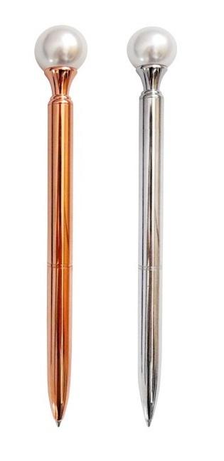 Długopis metalowy w kolorze złotym lub srebrnym z perłą.