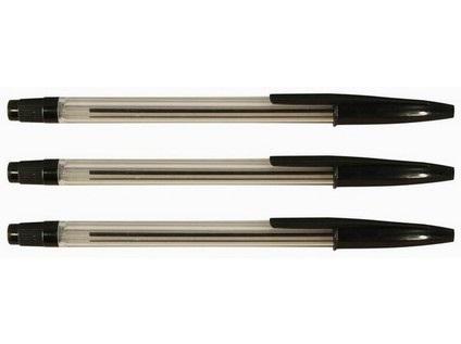 Plastikowy długopis, jednorazowy, przezroczysty korpus, czarny kolor tuszu, grubość linii 1,0 mm