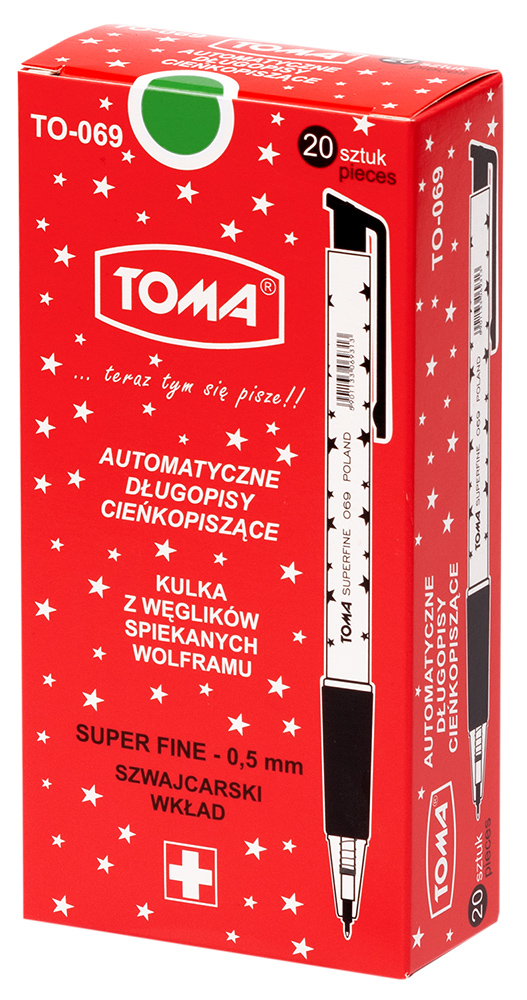 Opakowanie Długopis Superfine aut. 0,5mm zielony (20szt) TOMA
