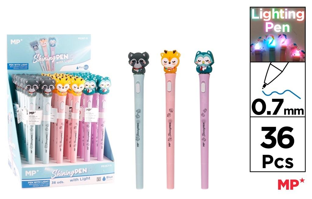 Świecący długopis niebieski 0,7mm. Opakowanie zbiorcze zawiera 36 sztuk. Mix wzorów.