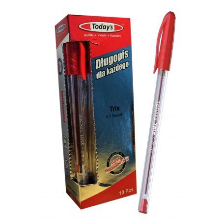 Długopis z wkładem olejowym ,wysokiej jakości końcówka pisania 0,7mm, pakowane box 10szt, kolor czerwony.