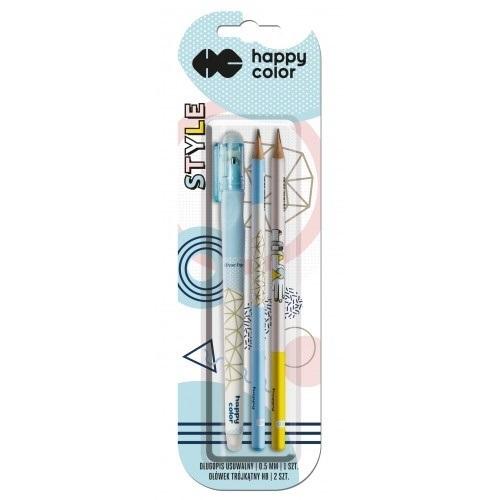 Długopis usuwalny + 2 ołówki Style bls HAPPY COLOR