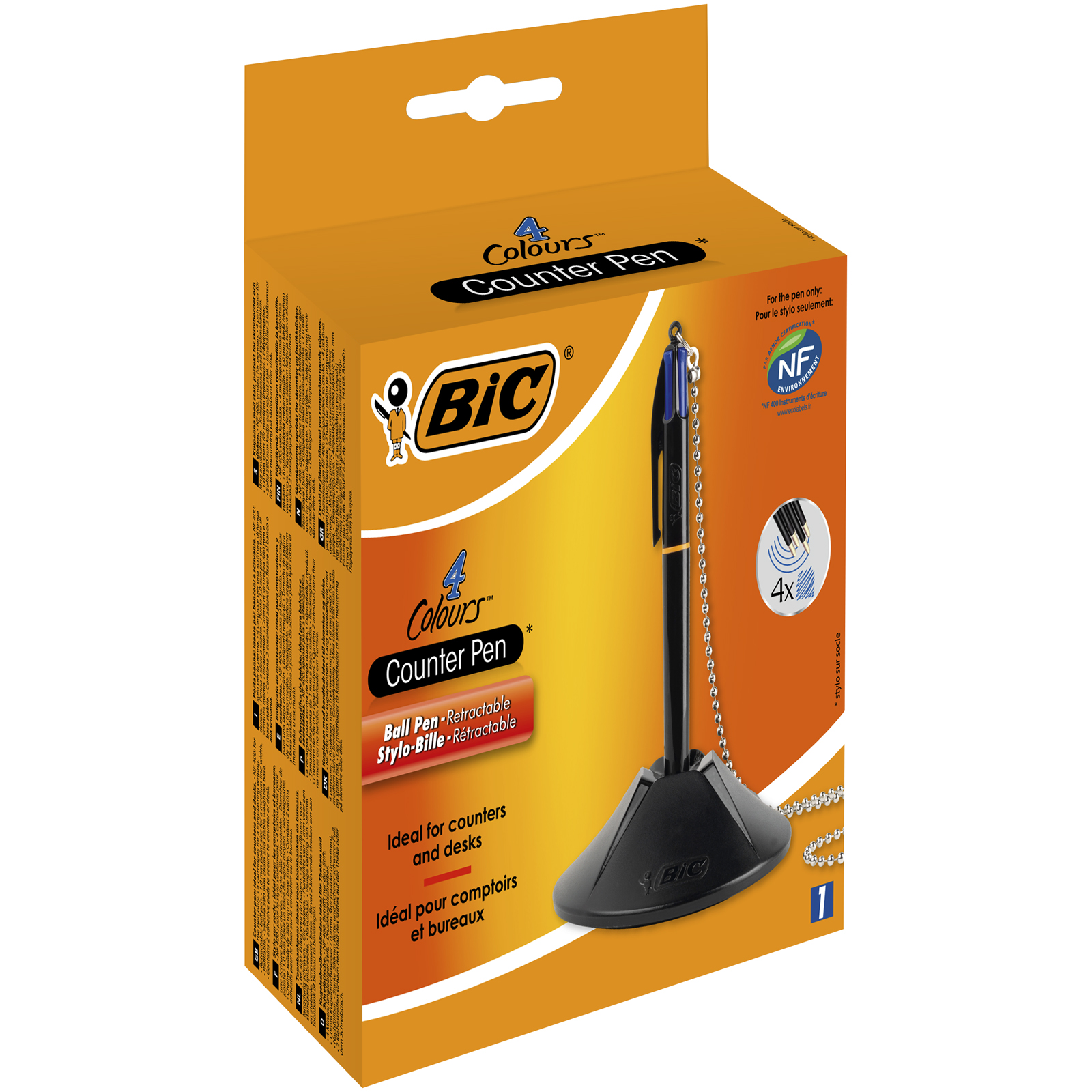 Długopis w stojaku idealny na ladę i biurko. 4 wkłady dla niekończącego się pisania. Średnia linia dzięki końcówce 1 mm. Wzmocniony łańcuszek 580 mm oraz stabilna podstawa. Zawiera 2 przyklejane podkładki.