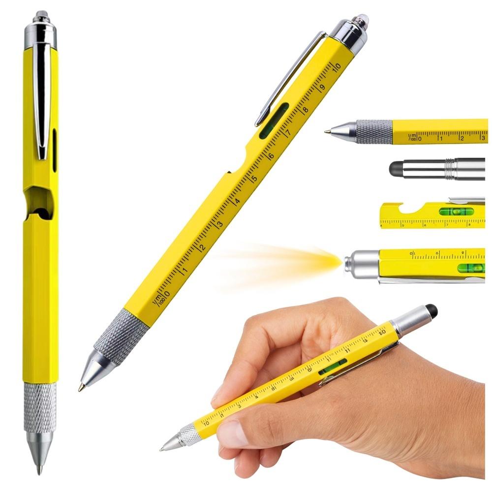Długopis wielofunkcyjny 8 w 1 z poziomicą LED śrubokręt żółty