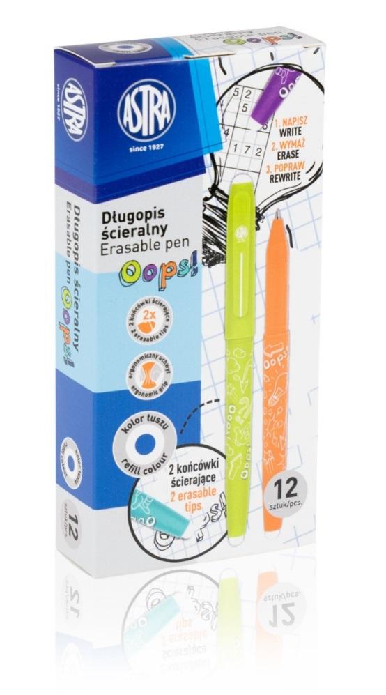 długopis ścieralny Oops! - box 12 sztuk - kolorowe korpusy